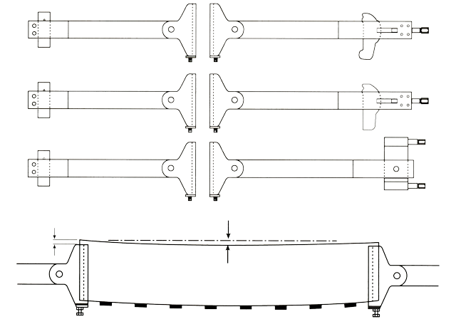 2- Son germe; üniteye kolaylıkla takılan bir pompanın yardımı ile basınç saatinde ton değeri ile gösterilmiştir. Katrak lamaları üzerindeki gergi 9 ve 10 ton arasında çalışmaktadır. Firmamız 10 mm.-11 mm.-12,5 mm. minimum kalınlıklarda kesim yapmak için gergi sistemi üretmektedir.(10 mm. için çift hidrolik gergi kullanılmaktadır) Aynı zamanda talep edilen özel ihtiyaçlara göre 12 tonluk gergi sistemi üretmekteyiz.